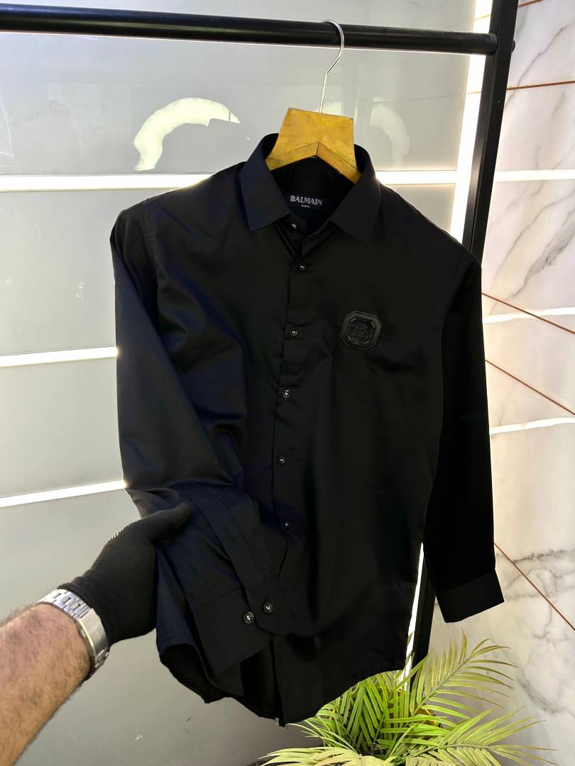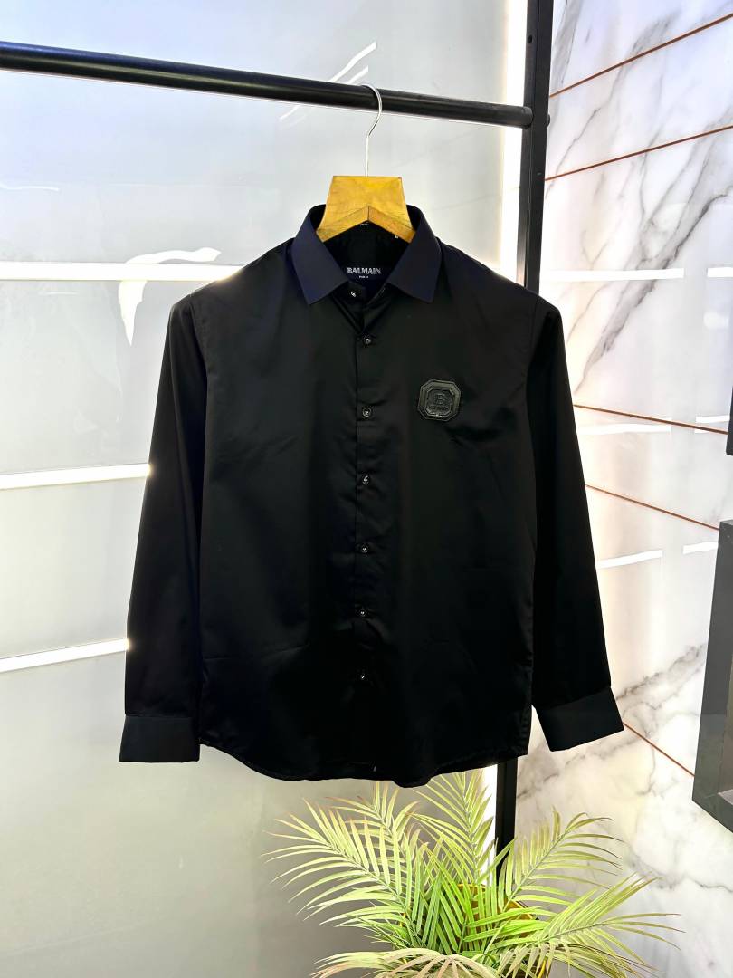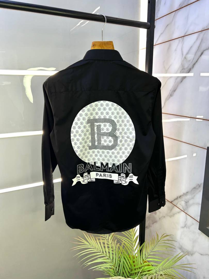 Balmai n Paris Black Back Printed Premium Shirt With Brand Box Packing And Carry Bag F2723-BL