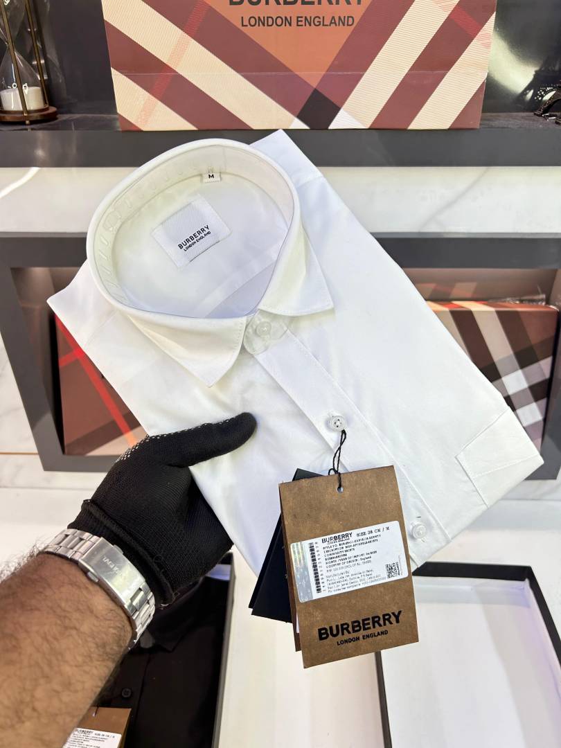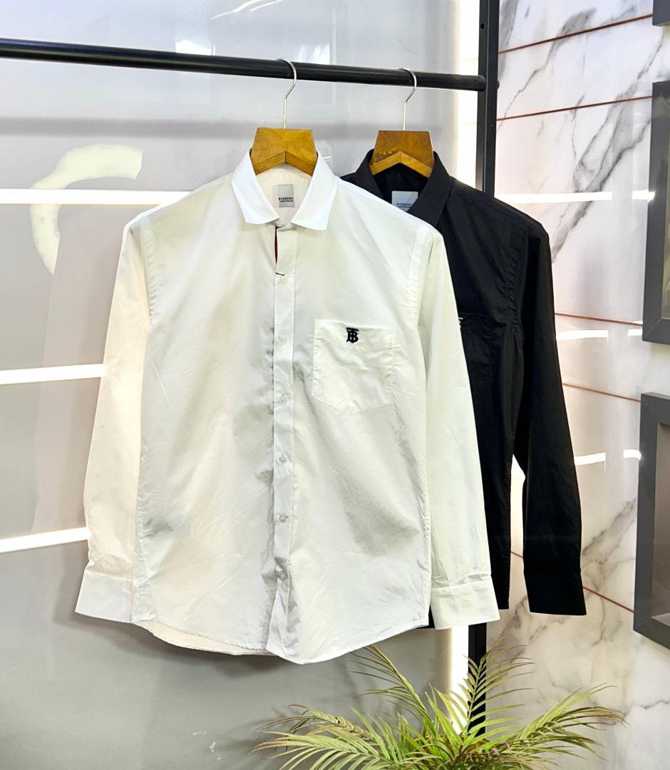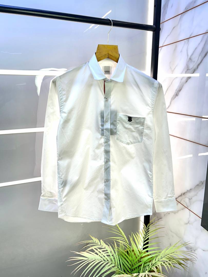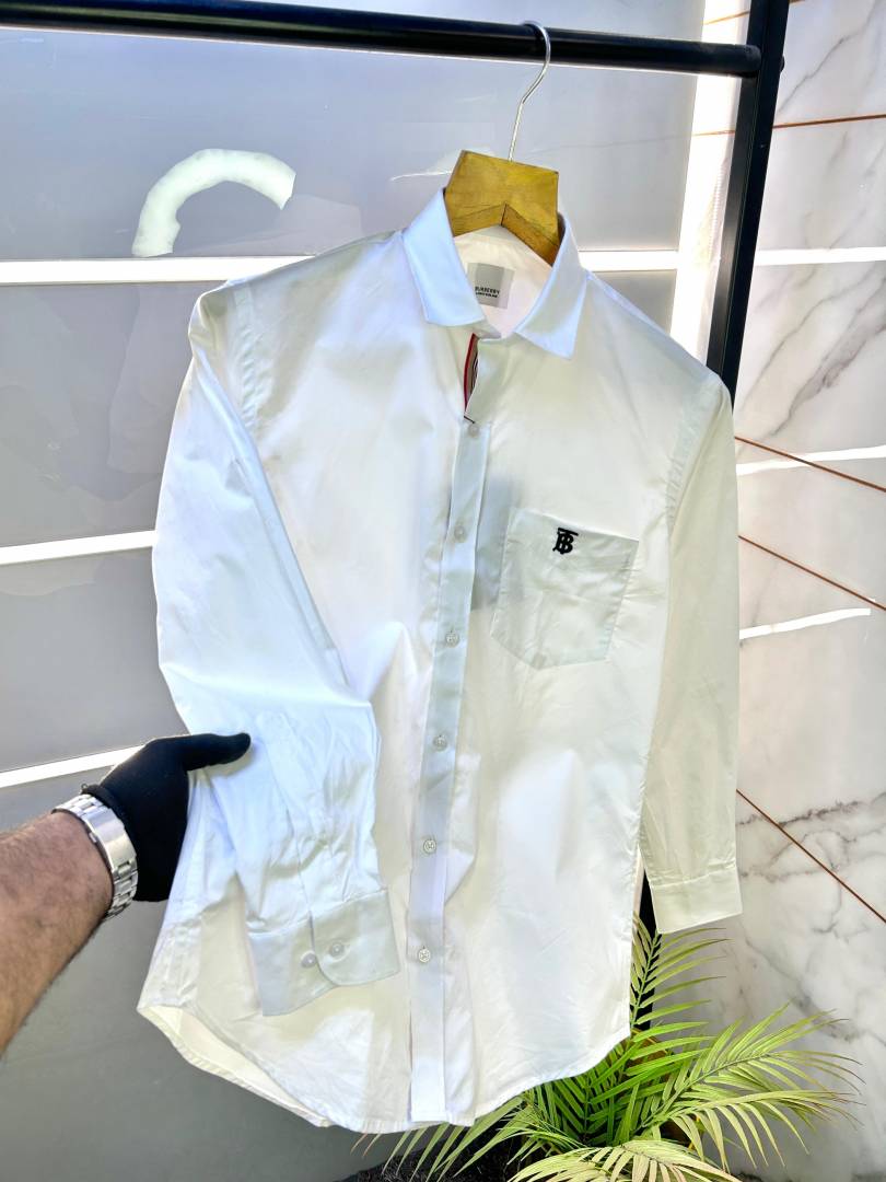 Burberr y White Embroidery Logo Premium Shirt With Brand Box Packing and carry bag F2735-WH