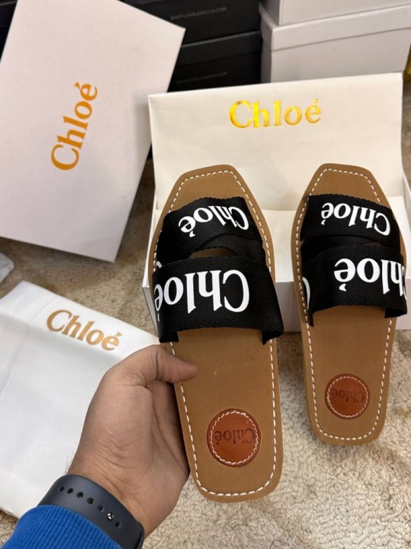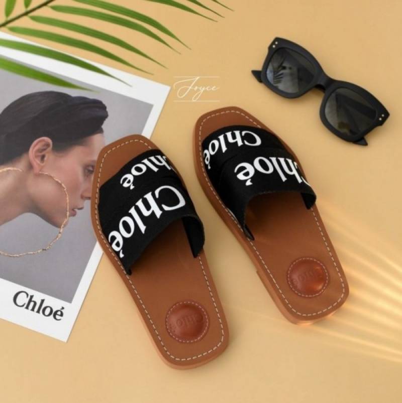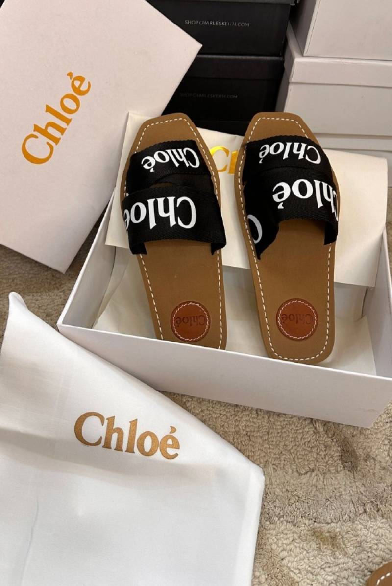 Chloe Woody Flats Slide With OG Box & Dust Bag (Black - 754)