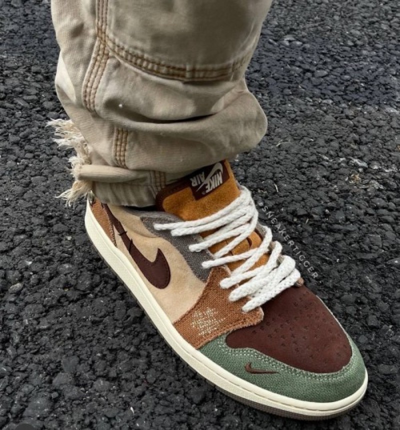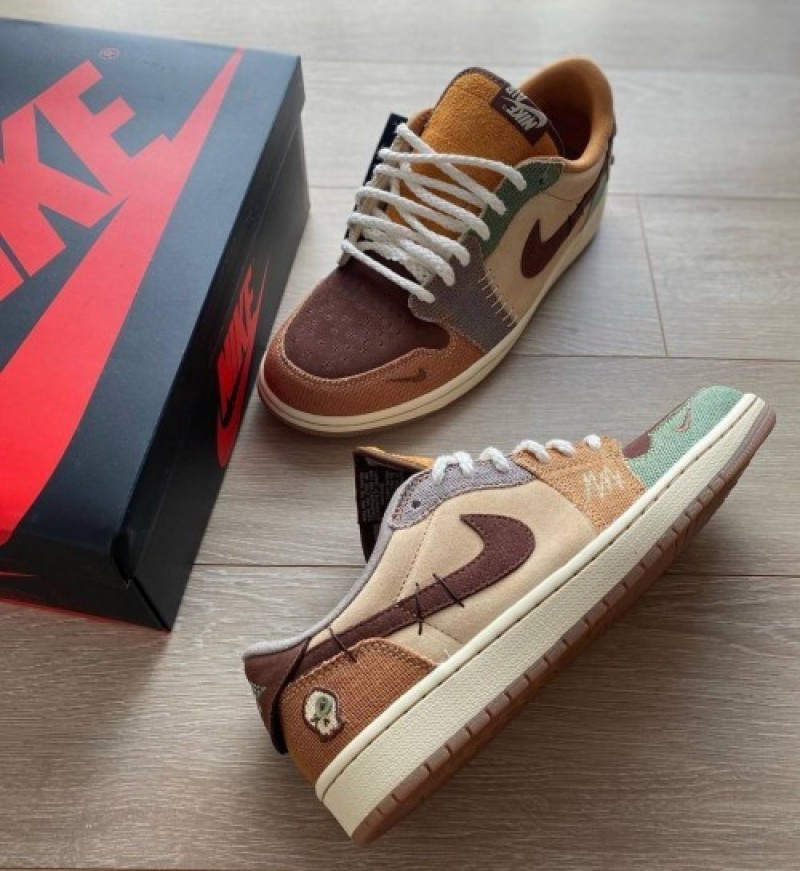 Jorda n 1 low Travis Scott olive semi ua with extra laces for men As2